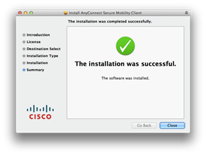 - When the installation is competed, click the Close button.